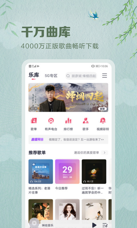 1.海量正版资源:咪咕音乐拥有数百万首高质量的音乐资源,覆盖全球主流曲库。用户可以随时畅享无广告的音乐沉浸体验。